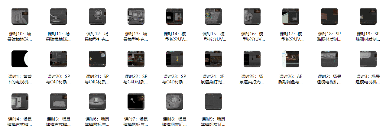 在建模之外,本章还会进一步讲解 UV 拆分流程、Substance Painter 贴图绘制、C4D 材质联动渲染 等关键内容,并结合灯光布局、画面氛围塑造和材质细节优化,帮助学员掌握一个完整静帧场景从建模到渲染输出的完整流程。通过这一章节,学员不仅能学会多个常见物体的制作方式,也能建立对场景整体质感与画面情绪的控制能力。
