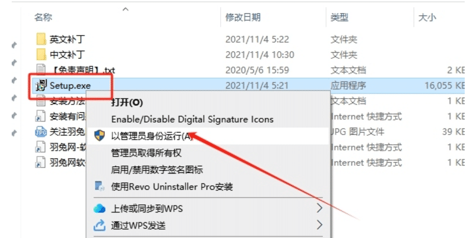 Setup.exe文件,鼠标右键点击,选择 “以管理员身份运行”;