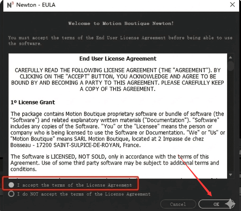 Newton - EULA许可协议窗口,勾选接受协议选项并点击确认,进入插件主界面;