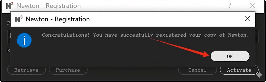 Newton,选择Registration。在弹出的注册对话框中,输入序列号MOBONWT3*didixk*AE*202002140917789SUL9,点击Activate。当界面弹出激活成功提示后,点击OK,即可解锁插件全部功能。