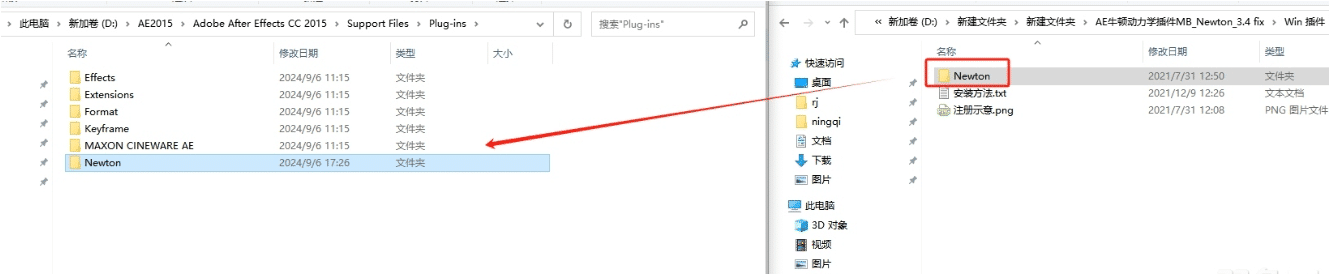- 解压安装包:将下载的插件压缩包(AE 牛顿动力学插件 MB Newton 3.4 fix.rar)用解压工具解压到电脑本地文件夹;