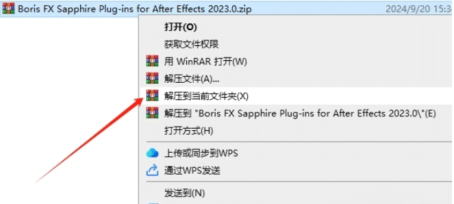 - 解压安装包:将下载的插件压缩包(Boris FX Sapphire Plug-ins for After Effects 2023.0.zip)用解压工具解压到电脑本地文件夹;