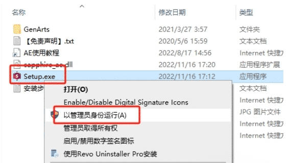 Setup.exe文件,鼠标右键点击 “以管理员身份运行”;