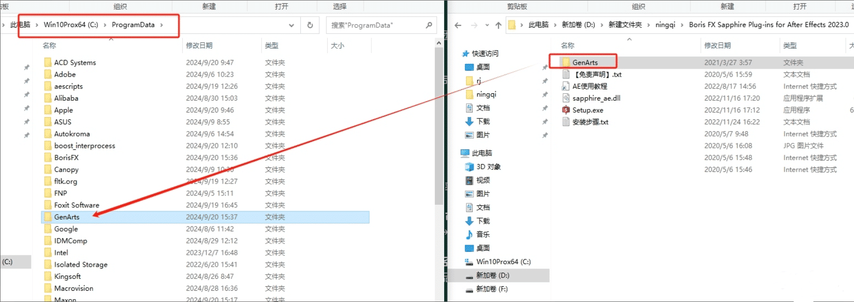 GenArts文件夹并复制,导航至路径C:\ProgramData,将文件夹粘贴至此;