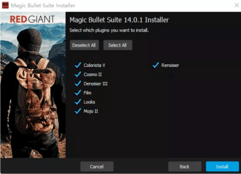 Magic Bullet Suite Installer安装程序,双击启动。点击Agree接受许可协议,再点击Continue。在插件选择界面,可按需勾选需要安装的插件(默认全选即可),最后点击Install,等待安装进度完成;