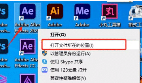 - 找到 AE 安装目录:右键点击桌面 AE 软件图标,在弹出的菜单中选择 “打开文件所在位置”,进入 AE 软件安装根目录;