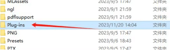 Support Files文件夹,进而定位到Plug-ins插件核心文件夹;