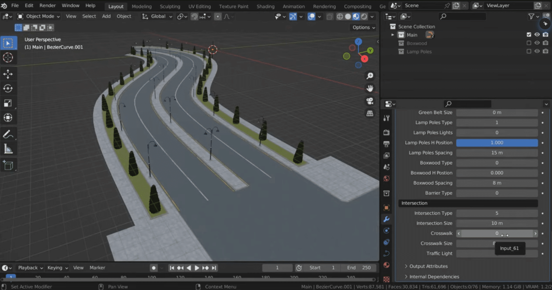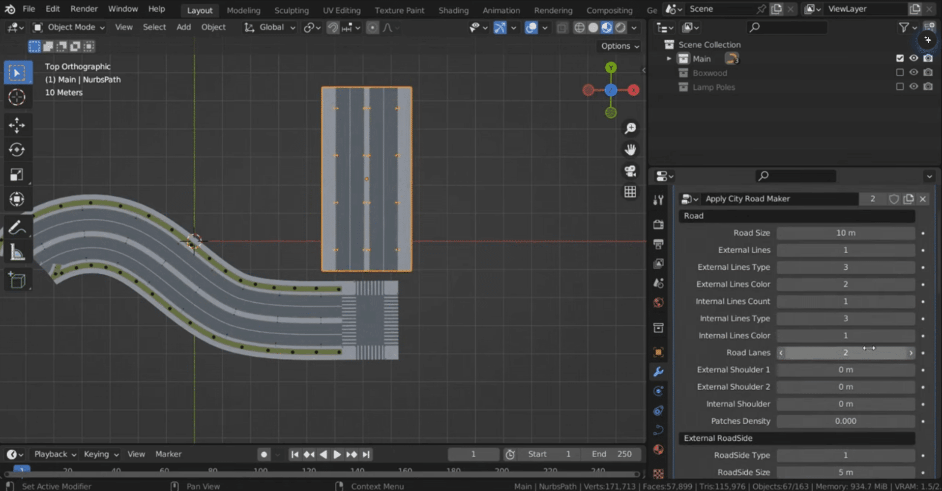 - 参数可调灵活适配:支持道路宽度、弯曲弧度、地形起伏、路面纹理等核心参数的快速调整,可根据项目需求(如城市道路、乡村小路、山地公路)灵活优化,适配多元场景创作。