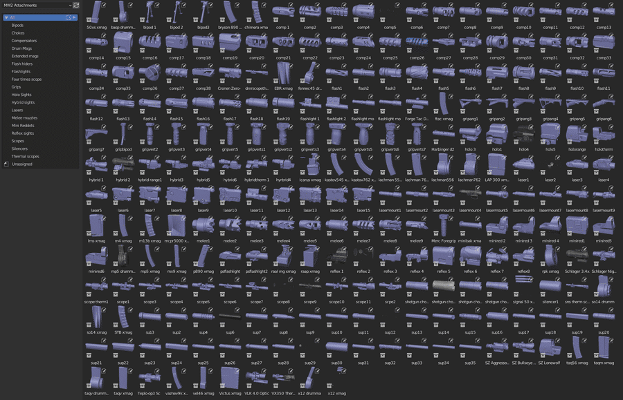 - 模组创作:为《现代战争 II (2022)》及同类 FPS 游戏模组创作提供高质量配件资源,丰富模组内容;