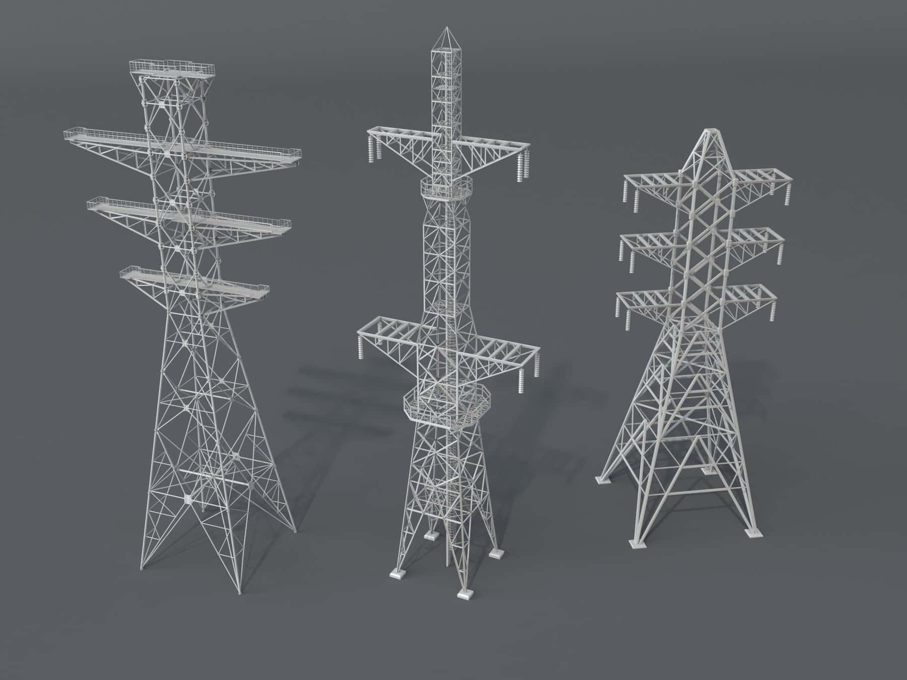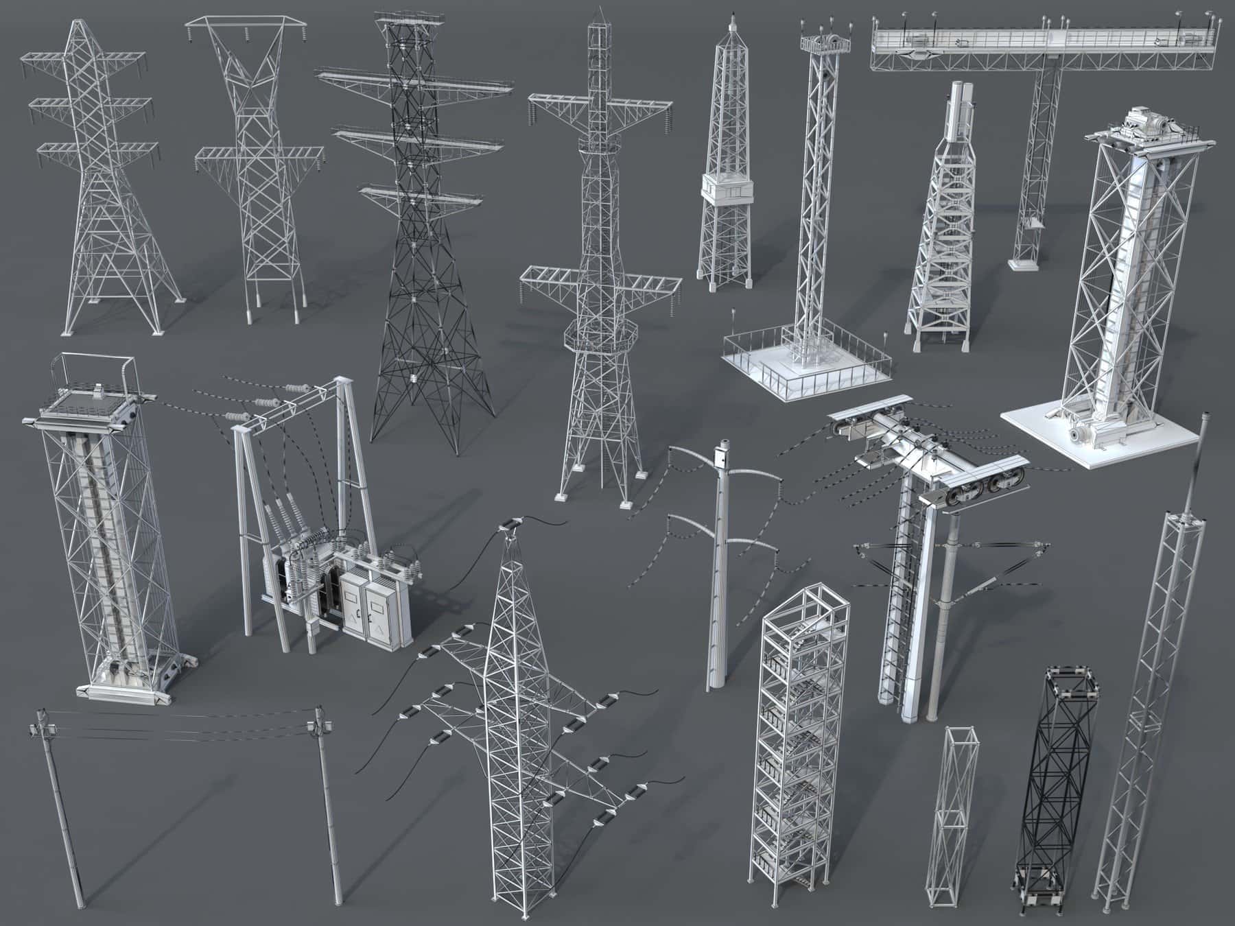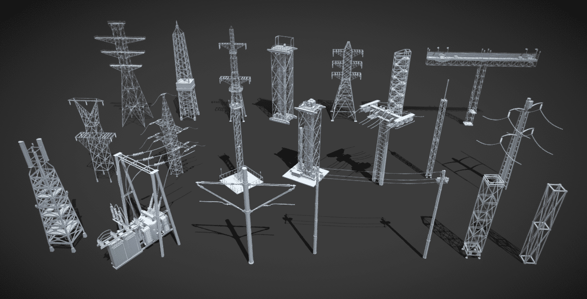 这款「20 组电力塔 3D 模型套装」,涵盖多元电力塔造型,以高精度建模标准打造,适配工程可视化、影视场景搭建、游戏环境制作等多种创作需求,无需手动建模即可快速获取优质电力塔资产。 核心资产信息 模型规模:包含 20 组不同类型的电力塔模型,覆盖常见的输电塔、通讯塔等造型,满足不同场景的电力设施搭配需求; 精度参数:整体多边形面数达 549,685,顶点数量为 539,393,精准还原电力塔的支架结构、拉线细节、连接节点等核心部位,兼顾细节质感与模型稳定性; 资源预览
