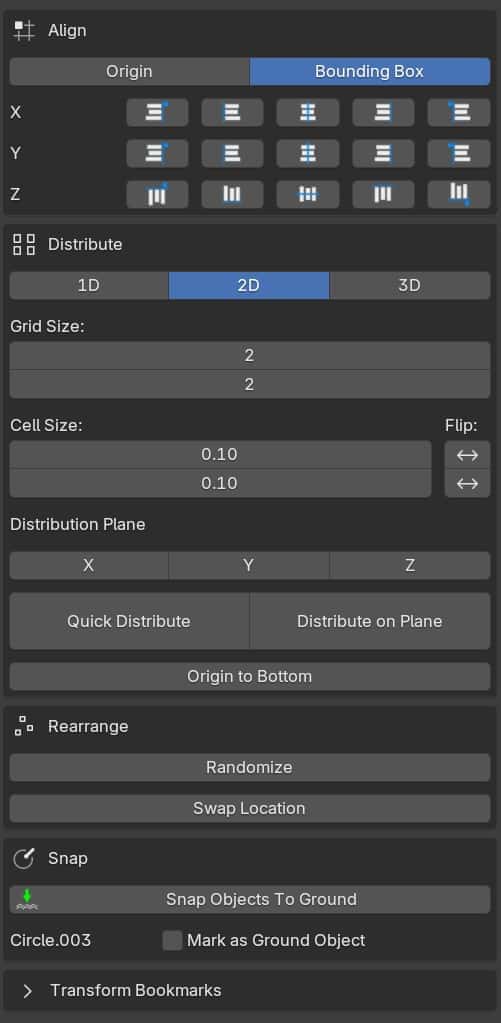 V2.0 版本现已发布! 新版本增加了对更多对象类型(如空物体、灯光、摄像机等)的支持。 Align And Distribute 是一款 Blender 插件,它为 Blender 引入了类似于 Inkscape 等矢量绘图软件中必备的对齐与分布工具。
