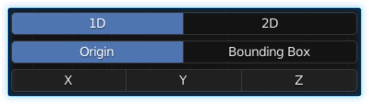 一维分布同样支持“原点”和“包围盒”两种计算方式。与对齐功能类似,使用包围盒模式时会提供更多选项。
