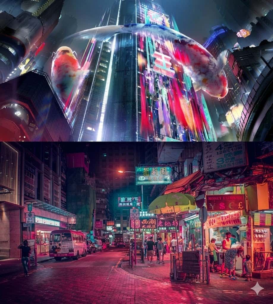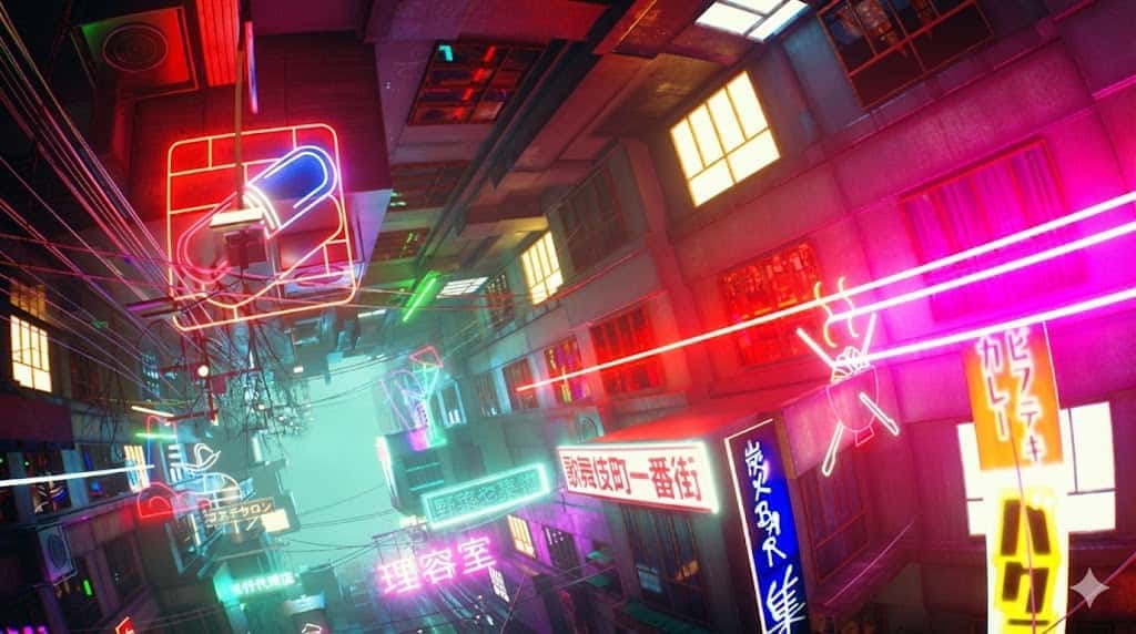 这种反差在作品中随处可见:泥泞湿滑的雨巷尽头,矗立着刺破天际的摩天大厦;街头五彩缤纷的霓虹广告,映衬着主角贫瘠落魄的居所;富豪依靠技术实现永生,底层贫民却命如草芥;看似完美的人生,实则依赖药物强行维系。也正因这份反差,赛博朋克作品常融入东方元素——传统文化与未来科技的激烈碰撞,让风格张力更上一层楼。